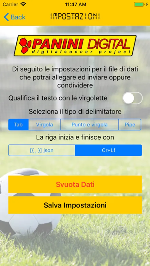 L'app su iPhone permette di visualizzare i tags e condividerli / salvarli nei più comuni formati di testo, scegliendo separatori ed eventualmente anche un formato jSon.