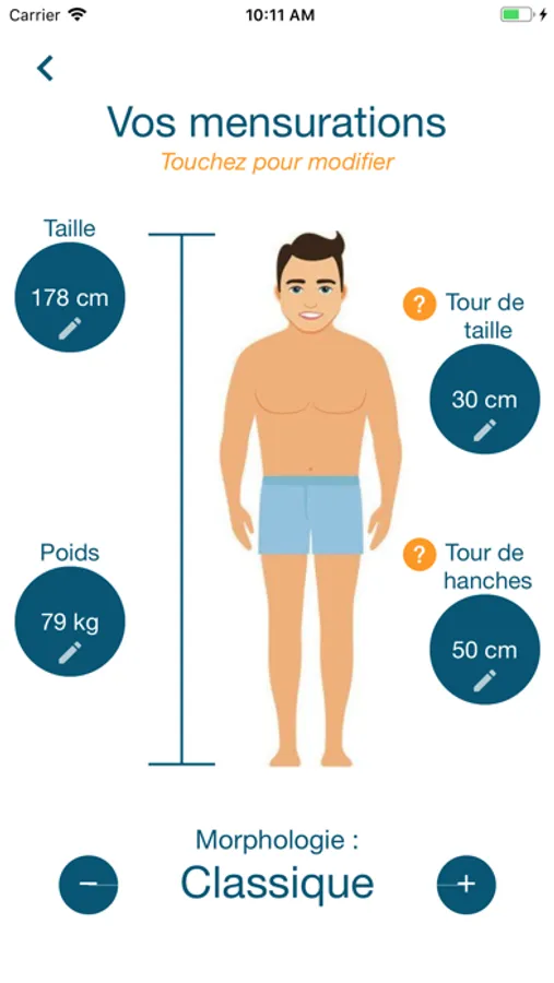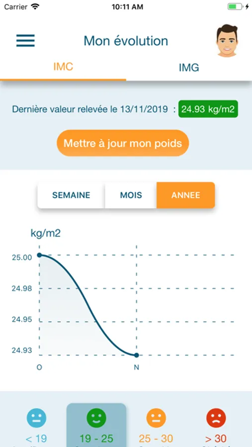 Vous pouvez également mettre à jour vos mensurations et votre poids pour suivre chaque semaine l’évolution de votre IMC et de votre IMG !
