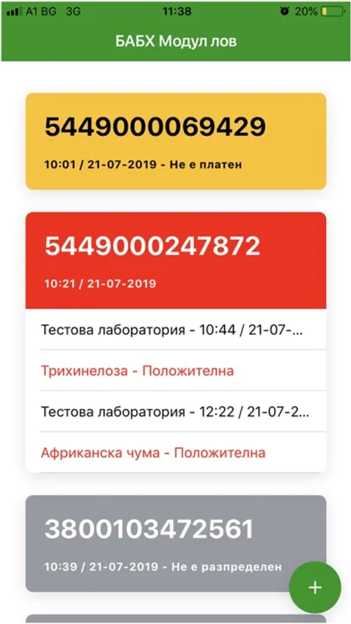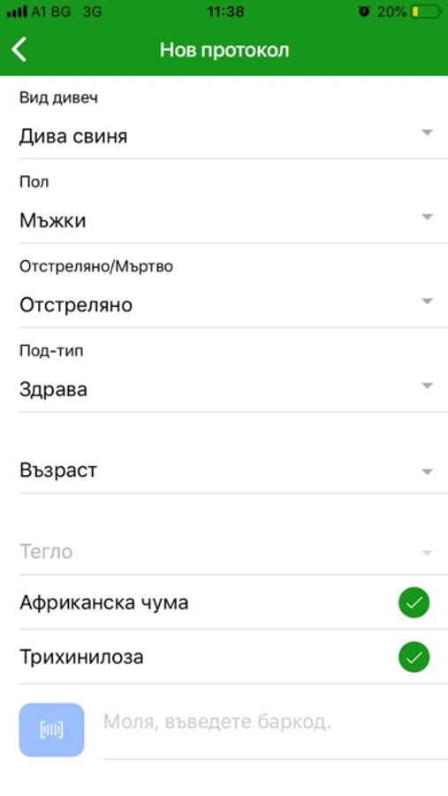 Mobile application for generating and submitting protocols to the Bulgarian Food Safety Agency, in the case of hunted or found game. The application allows the generation and submission of protocols with the all re-determined requisites, required from the Bulgarian Food Safety Agency for the purpose of laboratory the sampling of hunted or found game.