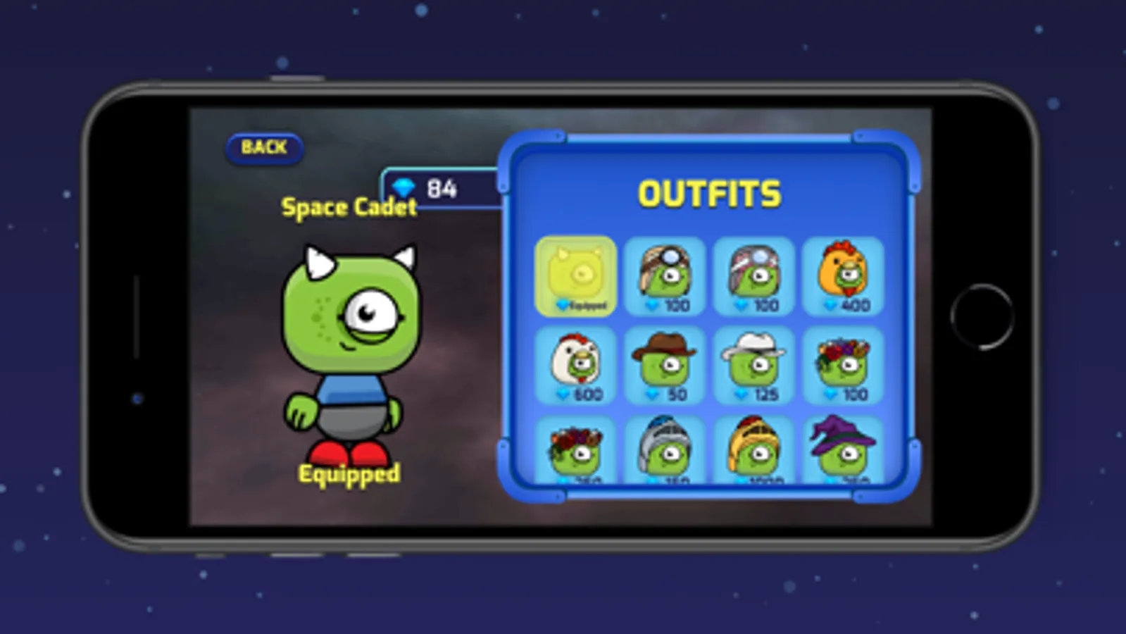 To strengthen player’s wellbeing behaviours and maintain their engagement, the app also contains two ‘mini games’ (simple arcade based space-games) which earn the player gems which can be used to customise their personal alien character. To access these mini games players are required to answer various wellbeing related questions with correct answers leading to increased gems.