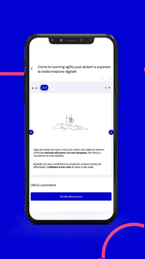 Dal tuo smartphone potrai accedere ogni settimana a nuovi approfondimenti per allenare le tue competenze digitali. Potrai avere il tuo percorso sempre a portata di mano ed allenarti nei micro momenti di apprendimento.