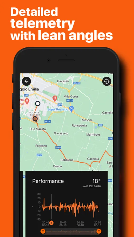 - Performance analysis with high precision telemetry (lean angle, speed, acceleration, 0-100, etc.)