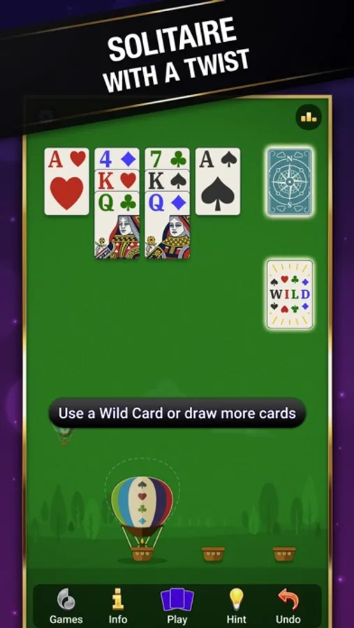 Earn wild cards by clearing the cards from the game board. The wild card allows you to discard any card from the game. Each game, players can earn up to 3 cards. Wild cards help avoid situations where you get stuck and have no moves to make! No one wants to be dealt a hand they can’t win. Each wild card you save grants additional bonus points for that game.