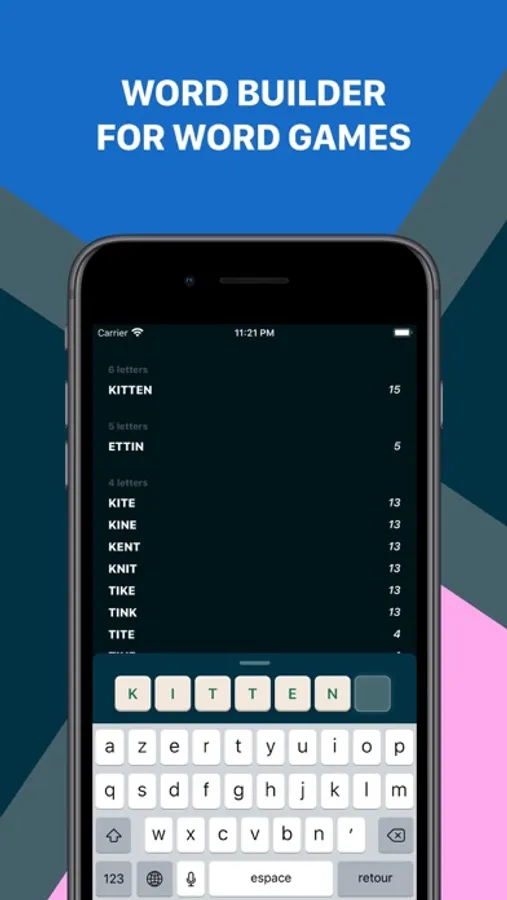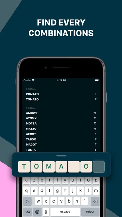 With this app, just enter the letters of your game, and discover all the solutions that are available to you.