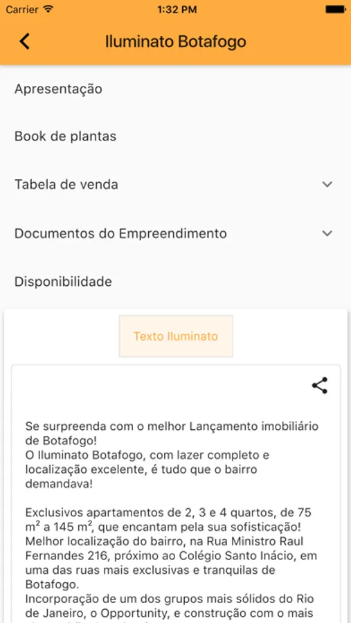 - Tem textos prontos dos empreendimentos para somente compartilhar com os seus clientes;