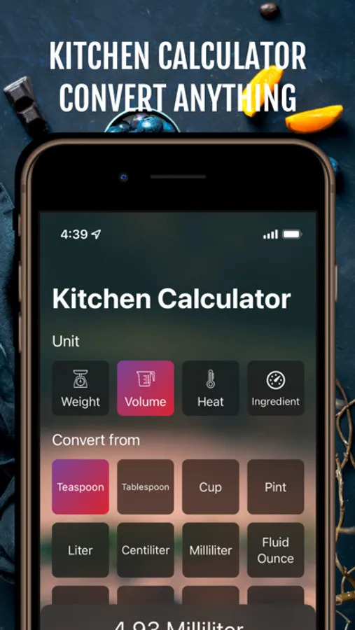 • Convert volume, weight or temperature units with easy-to-use interface.
