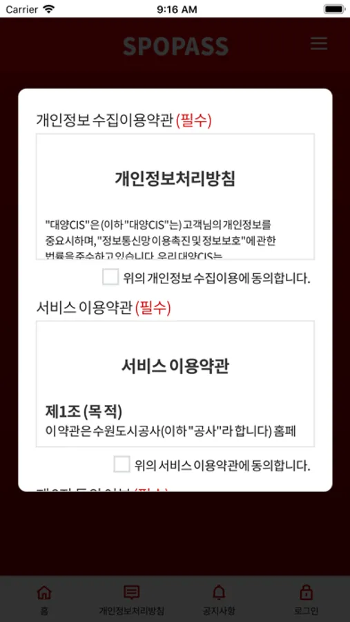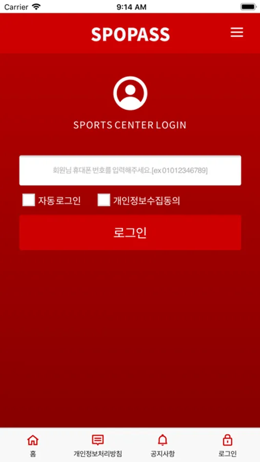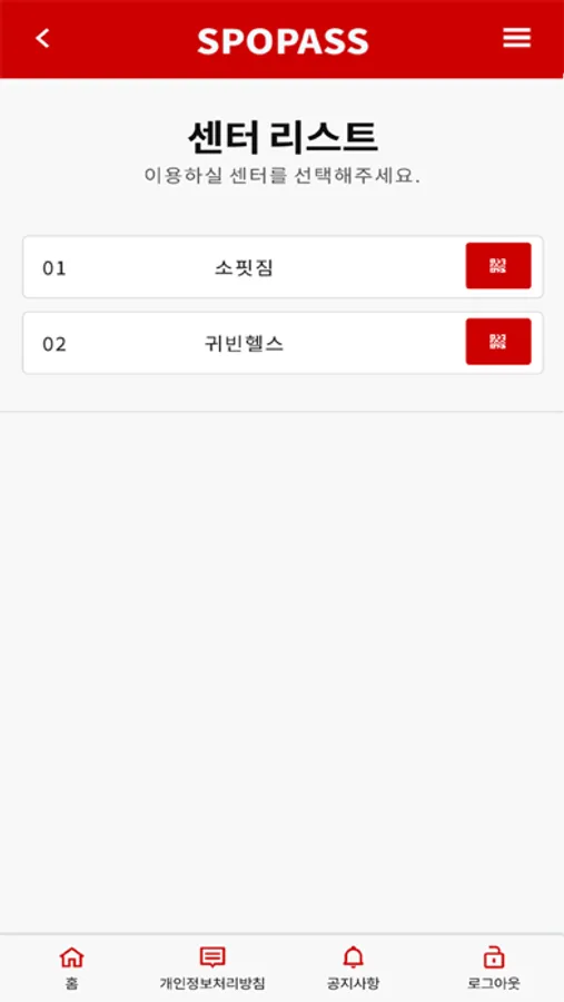 스포패스앱은 별도의 인증 필요 없이 가맹스포츠 센터에 가입한 내역을 가지고 회원 인증이 가능합니다