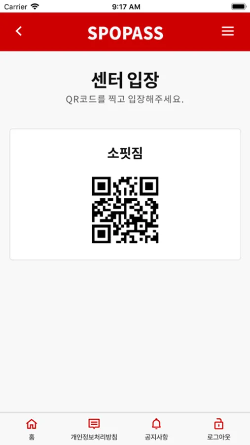 이용중인 강좌로 자동입장이 가능한 서비스 어플리케이션으로 이용중인 가맹스포츠센터에서