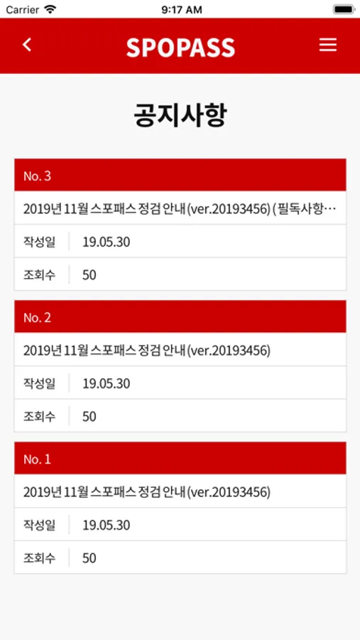 > 이용중인 가맹스포츠센터에 강좌 운영 각종 공지사항 확인이 가능합니다.