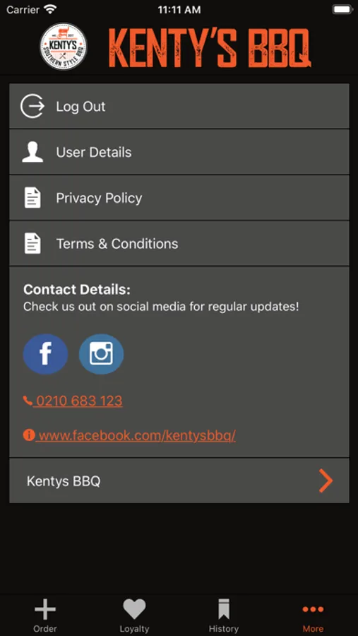 The Kenty's BBQ app enables you to order and pay for your coffee from your iPhone as well as look after your loyalty rewards.