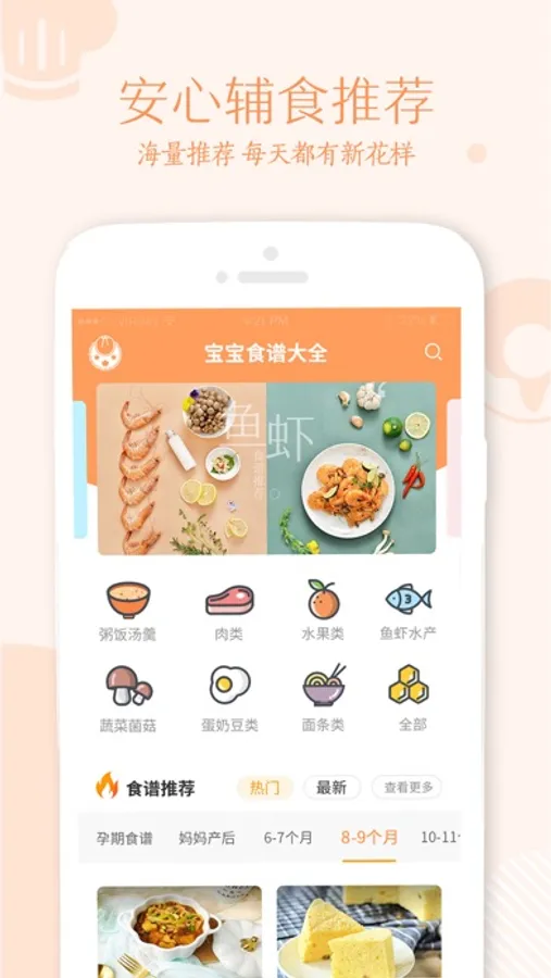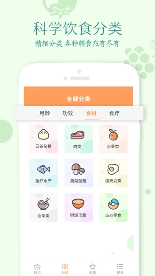 6,详细划分各种不同类型的食谱,补钙铁锌、DHA、维生素、免疫力、五谷杂粮、肉类、水果类、鱼虾水产、蔬菜菌菇、蛋奶豆类等等不同类型的辅食食谱。让您的宝宝健康成长。