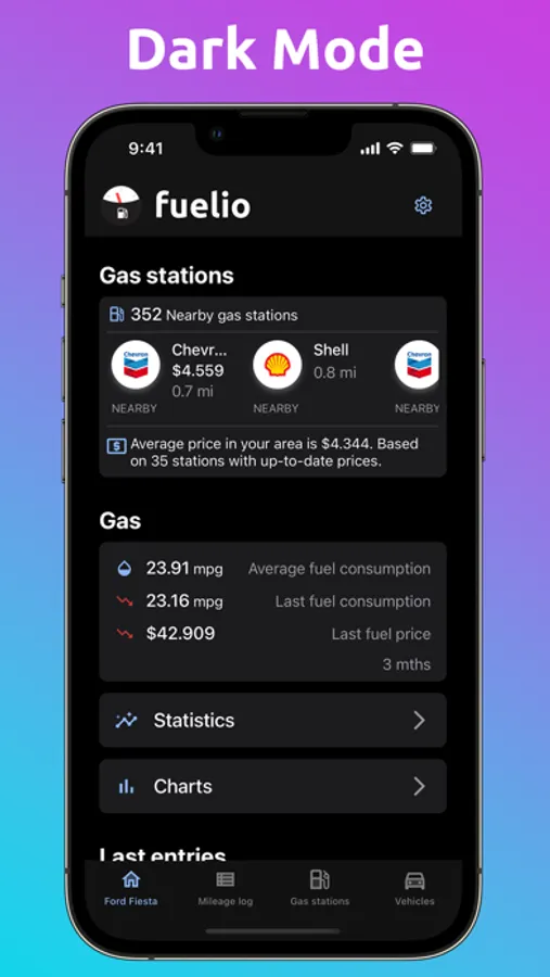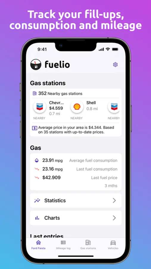 Fuelio is simple, easy to use application to track your mileage, gas consumption and gas costs. Using this App you can track you car expenses on fuel, your fill-ups, fuel consumption, car´s mileage, gas costs/gas prices and save money.