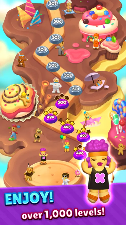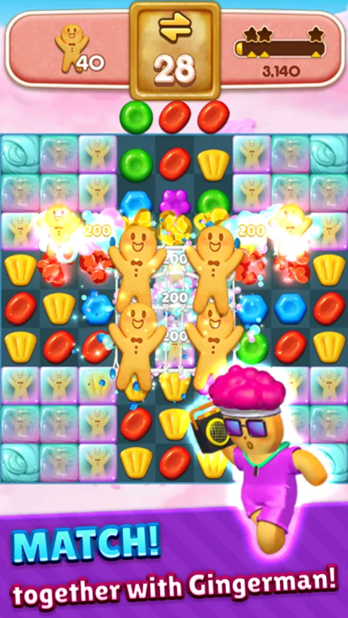 A pink cotton candy cloud enchanted by delicious cookies, jellies, chocolate and marshmallows is home to some of the most famous gingerbread rappers, chefs, astronauts, philosophers and farmers in the universe. Wait what? Gingerbread? Rappers? Chefs?? Astronauts??? Now that’s a fun twist! If you enjoy Match 3 puzzle games but want to try something new and exciting Candy Drops is for you. Get fresh advice and feedback on your puzzle solving skills from the coolest gingerbread rappers in your neighborhood and meet various other gingerbread friends on the road. Have the best time with unique, wonderful and cheeky gingerbread characters in this crazy sweet fantasy world!