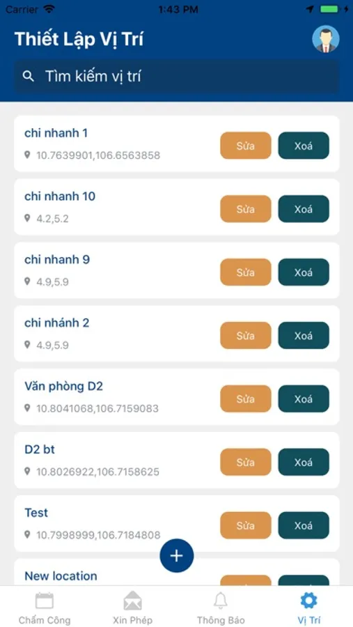 Ứng dụng thực hiện chấm công cho nhân viên gồm chức năng: