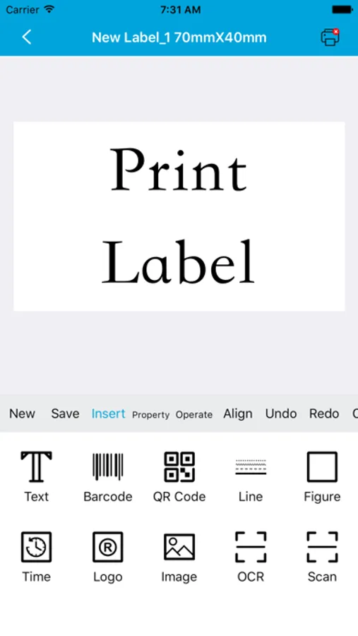 Print Label是一款免费应用程序,可以将移动设备与打印机设备进行蓝牙/Wi-Fi连接并打印。支持中英文字符,各类条码、二维码等的打印。