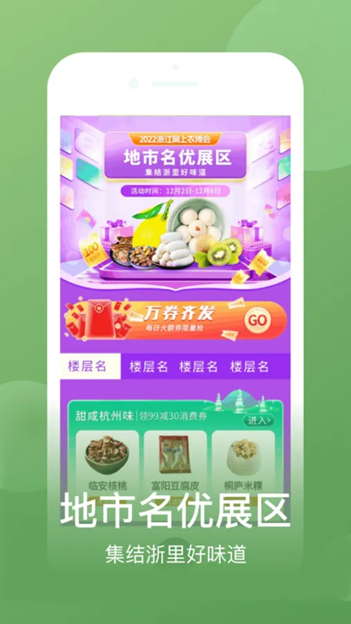 根据参会区域、消费种类、特色农产品,以及精准扶贫方向,网上农博会分为“浙里田园乡旅展区、金奖产品展区、26共富展区、地标农品展区、区域品牌展区”