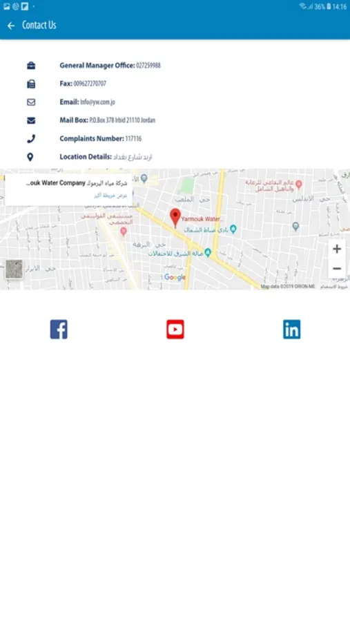 This user–friendly mobile application has been developed in collaboration between GIZ and Yarmouk Water Company (YWC) to enhance the communication between water users (local communities) and water provider YWC in six communities in Irbid governorate, namely: Ebder, Doaqarah, Bait Ras, Samar, Foa’rah and Alkharaj.