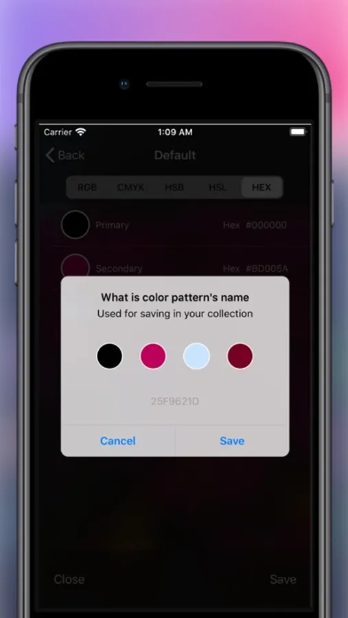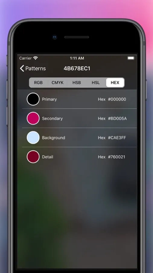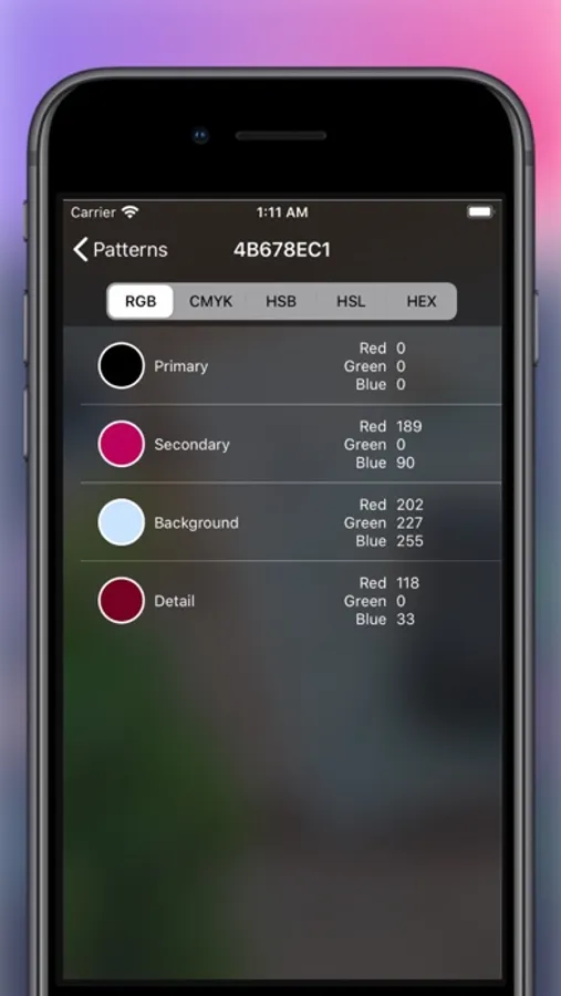 • Convert between RGB, CMYK,HSB, HSL and HEX components of each color