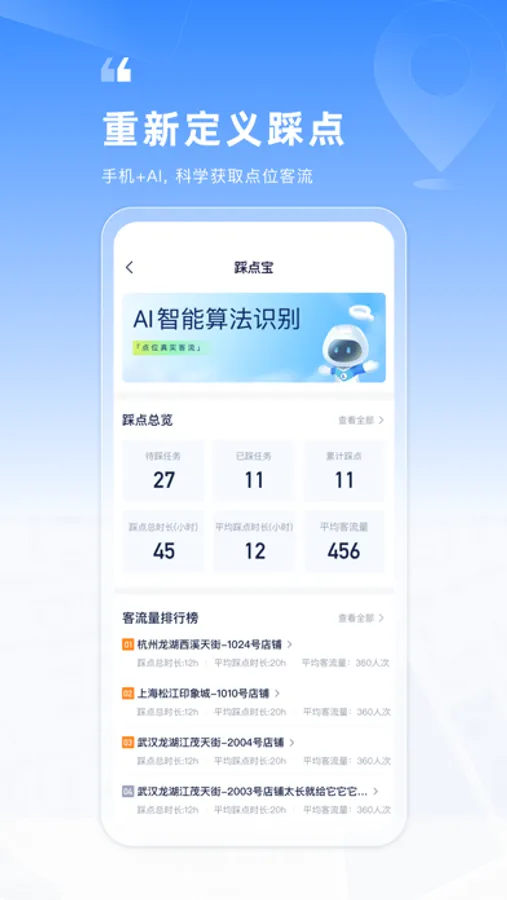 为品牌连锁门店提供基于点位真实客流数据及AI算法分析的决策评估服务的。围绕门店流量漏斗,在选址规划、拓店决策、门店模型、运营优化等不同门店阶段,建设品牌私有的流量价值计算能力。