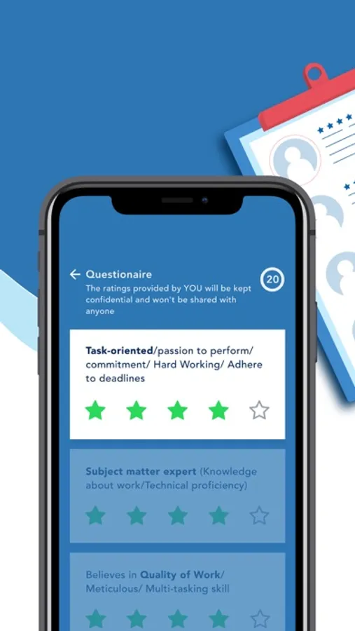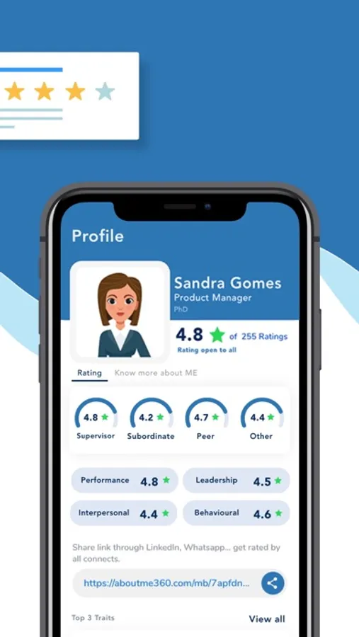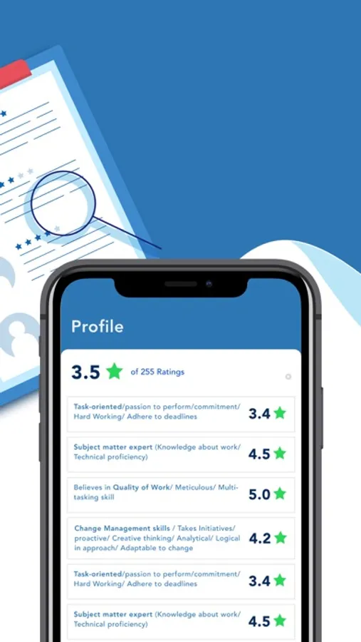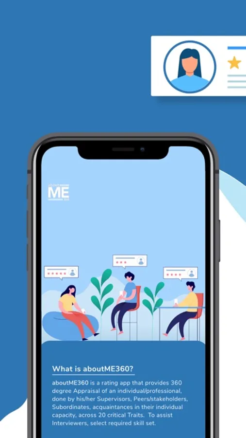 A Rating App that provides 360 degree Appraisal of an individual/professional, done by his/her Supervisors, Peers/stakeholders, Subordinates, acquaintances in their individual capacity, across 20 critical Traits. To assist Interviewers, select required skill set.