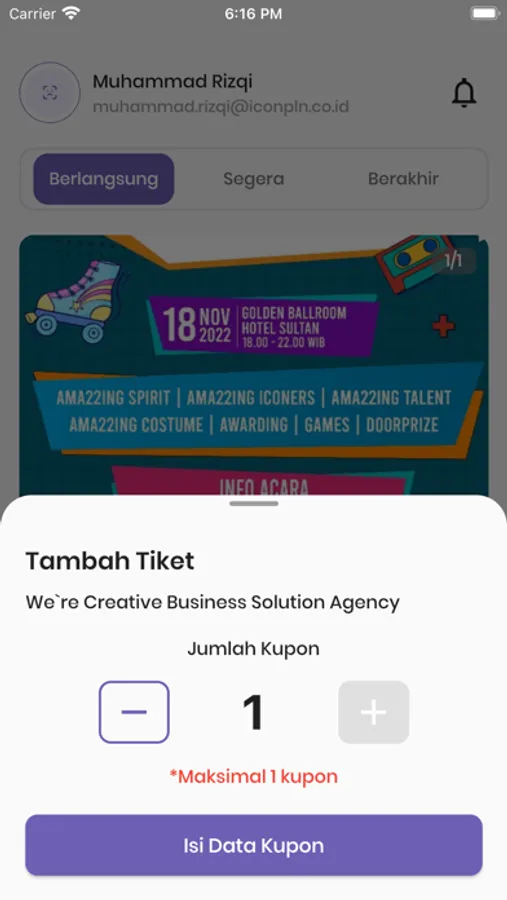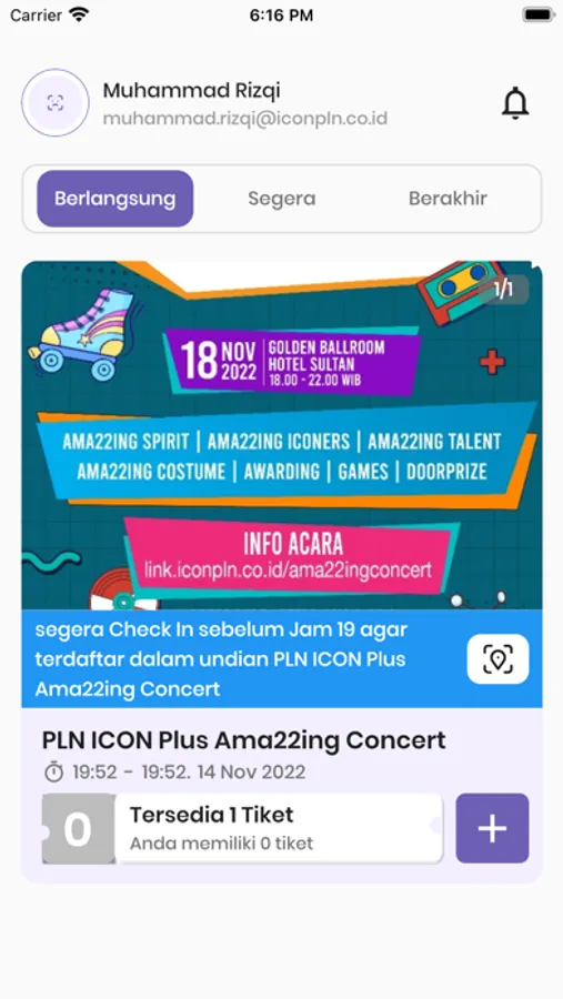Aplikasi PLN ICON Plus Ama22ing Concert merupakan aplikasi yang dirancang untuk Event HUT PLN ICON Plus, Aplikasi tersebut berfungsi untuk dapat melakukan registrasi, menginput kode undangan, dan sebagainya.