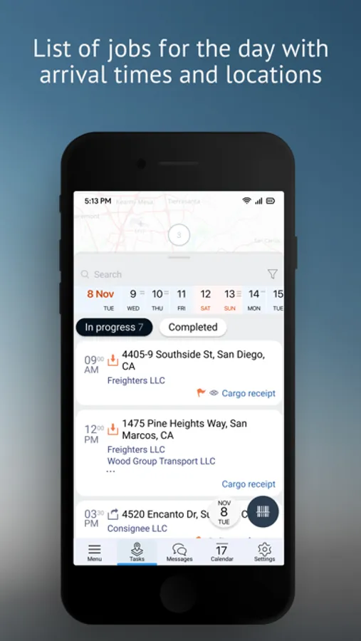 Keep work orders under control: check the list of jobs scheduled for the day and their detailed descriptions. You can also specify the amount of materials needed for a job, and Saby will automatically deplete them from inventory once the work order is completed.