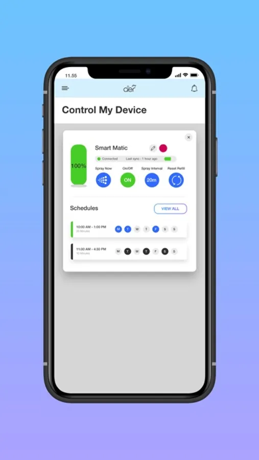India's first mobile controlled smart home air freshener that sprays automatically at intervals set by you, as and when you want. With the control literally at your fingertips through SmartScheduler, you can now make your homes amazingly fragrant and your life amazingly simple. You can get instant freshness with a spray now button, put your device on/off with the click of a button, and schedule your device to switch on/off at per your preferences and desired spray interval. Enjoy uninterrupted freshness with timely low-refill and low-battery notifications for your added convenience. You can also buy your refill directly through the app. Just pick one of our 6 designer fragrances, connect, schedule, sit back and relax!