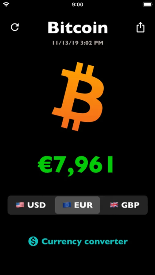 Bitcoin Price - convenient and beautiful app that displays the current rate of bitcoin to three currencies.