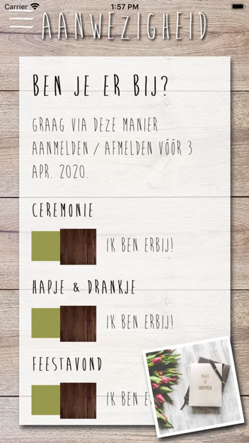 Met Weddicon kun je uitnodigingen voor je bruiloft gemakkelijk en via eigen wens versturen. Je kunt met deze app: