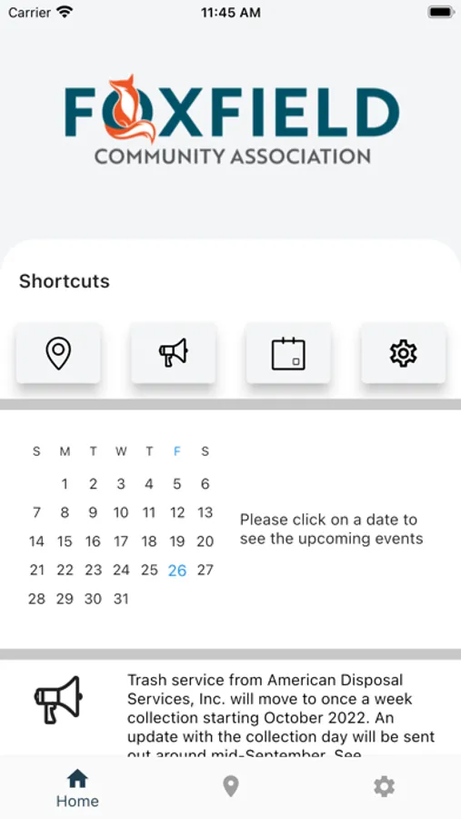 This is the official app for the Foxfield Community Association. This app gives you access to submit a request, the community calendar and more. You can also be confident that you will not miss important updates that are delivered to you via our push notifications. Staying connected in Foxfield Community Association has never been easier!