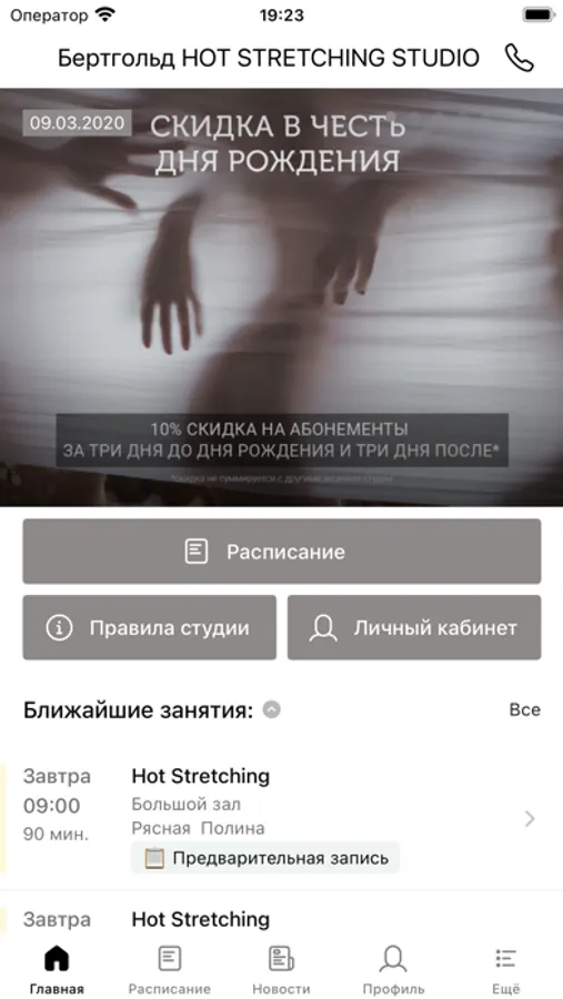 С помощью приложения вы можете записываться на занятия и отменять бронирование, следить за новостями, расписанием студии, оперативно получать информацию об изменениях в расписании и специальных предложениях студии.