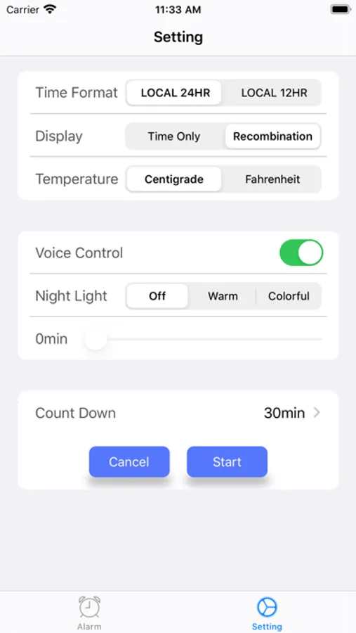1~60mins timing night light, sound-control night light, colorful night light mode.
