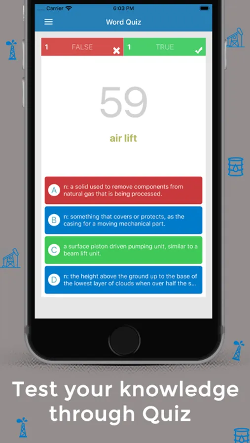 - We developed a new quiz inside Petroleum dictionary Offline! To take the quiz, you can easily tap the option icon in the top left side of the screen and choose quiz. Now, you will see a word in the screen with 4 answers, you will have to tap the answer that you think its right to see if it’s the good choice or not. Keep in mind, that there is a countdown timer and if it finishes without a reply from you, then the quiz will ends.