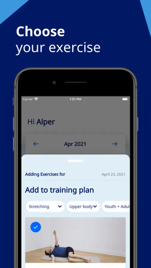 You can use the video function to record additional exercises with your physiotherapist and add them to your personal training plan.