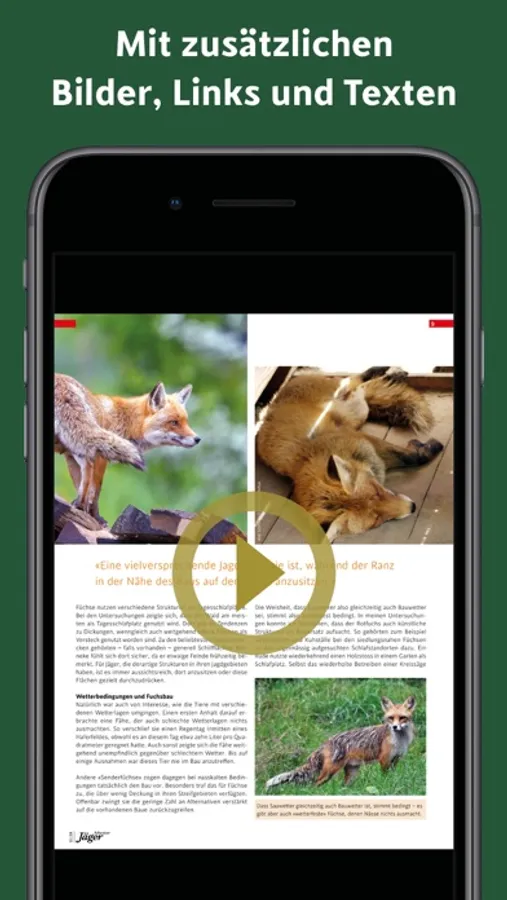 Geniessen Sie den Schweizer Jäger digital und profitieren Sie von multimedialen Anreicherungen wie zusätzlichen Bildern, Videos und Suchfunktion. Nutzen Sie den Textmodus, um auch auf kleinen Bildschirmen die spannenden Texte angenehm zu lesen.
