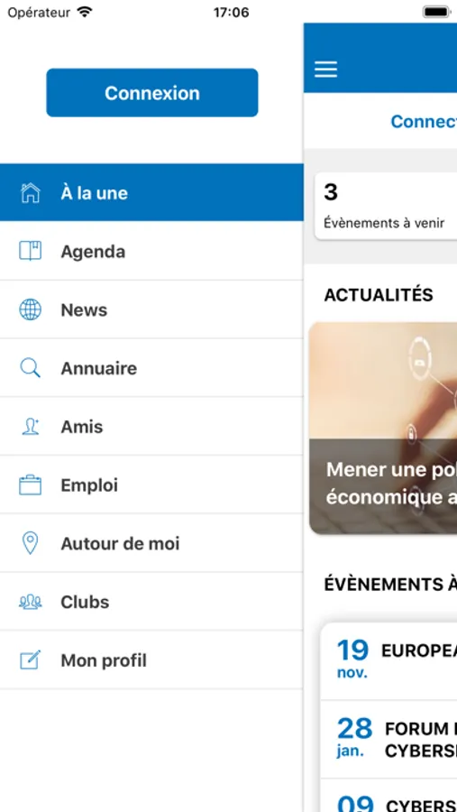 Elle vous permet d'accéder facilement aux principaux services présents sur notre site web : consultation de l'annuaire des alumni et géolocalisation des membres, mise à jour de votre profil, accès à l'agenda des événements et aux offres d'emploi...