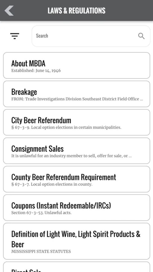 The official app of the Mississippi Beer Distributors, including searchable and browseable laws and regulations. Find out details on how to handle things like Breakage, Direct Sale, and more. Also includes county breakdowns, updated Mississippi Beer Distributor News and a monthly poll of our users.