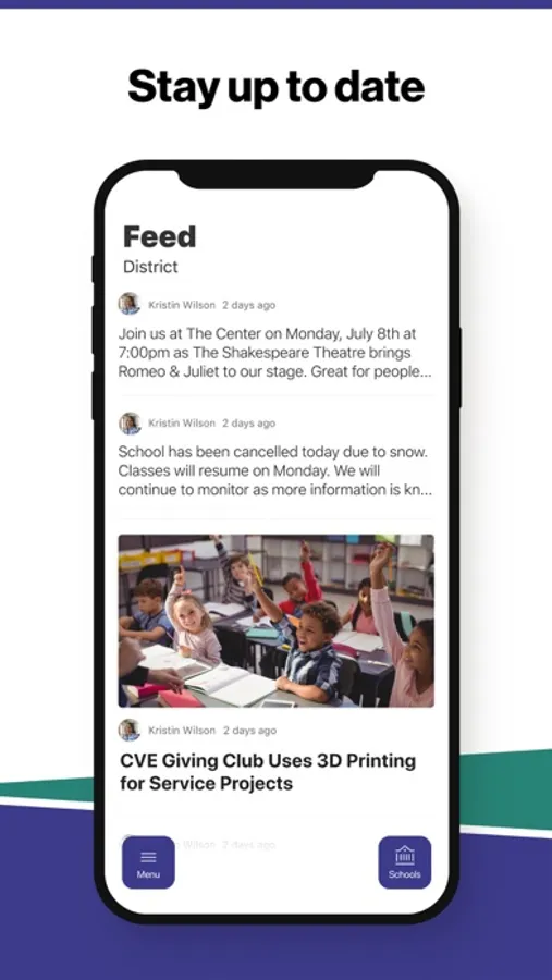 In the Live Feed is where you’ll find updates from administration about what’s going on in the district right now. Whether that’s celebrating a student’s success, or reminding you about an upcoming deadline.