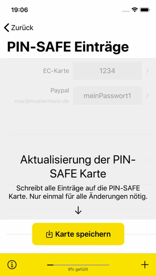 PIN-SAFE is the world's only patented offline NFC data safe for the secure storage of your confidential codes. Whether you wish to store PIN numbers for your EC or credit cards, e-mail account passwords, or other sensitive data e.g. for shopping portals etc., PIN-SAFE is the secure alternative for those who are sceptical about conventional online and cloud solutions.