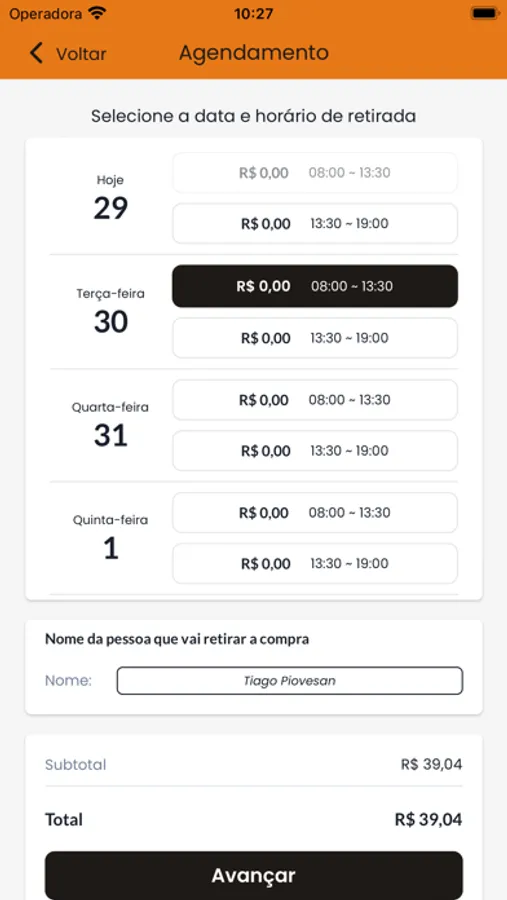 4 - Selecione o horário de entrega ou retirada.