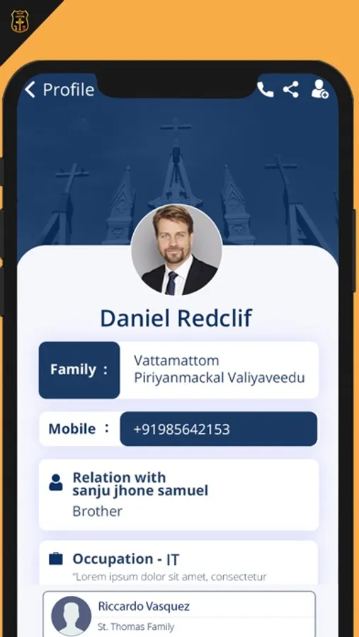 All the members of the community can be found through this app and can be searched based on name, family, locality and profession. The user can receive notification directly from the church regarding any activity pertaining to the church. The history and details of the current management can be obtained through this app.