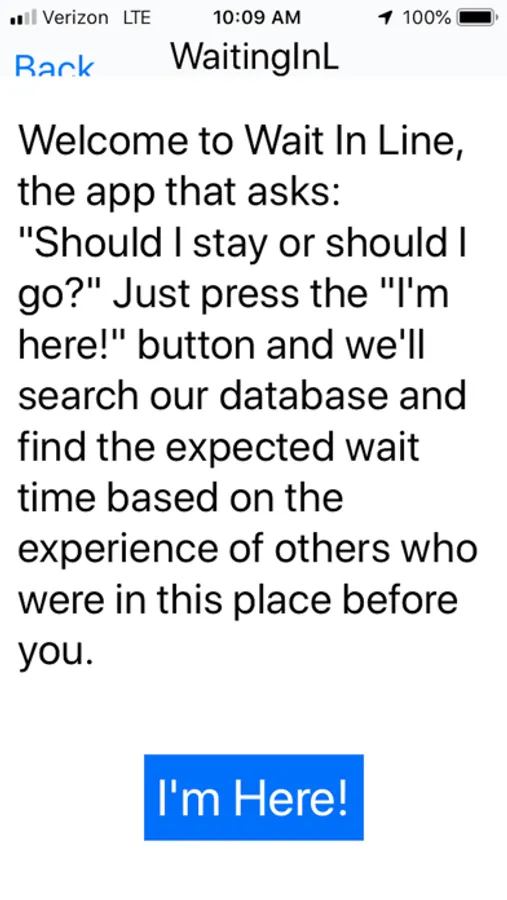 The Waiting In Line app allows you to know how long the wait is, reporting instantly how many minutes you have to wait. Now you can know if you should stay... or come back later.