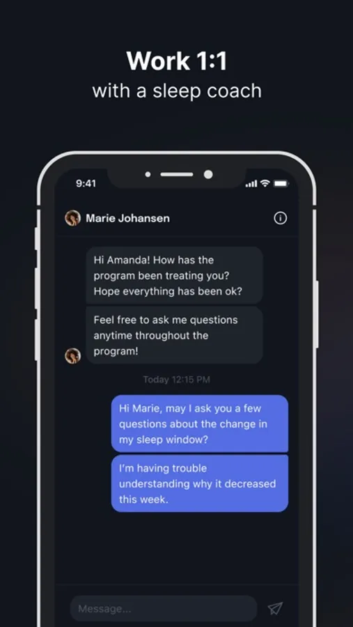 If you use a sleep tracker that integrates with the Apple health app, Dawn can directly track your sleep every night. Your coach and you can leverage this insight to adjust your sleep plan and improve your sleep.