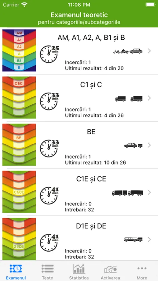categoriile/subcategoriile С1/С, BE, C1/CE, D1/DE и D1/D