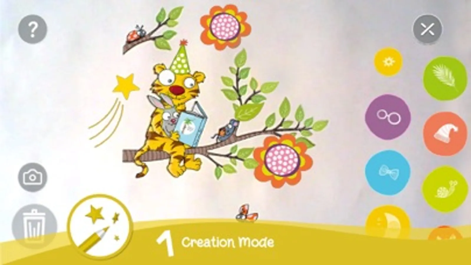 CREATIVE MODE: Every Wall Stories theme has an AR ‘creative mode’ that gives you the option of adding dozens of funny and cool accessories to your room decor. Add hilarious glasses, a jaunty hat, a saucy bow to Leopold the Tiger, or even relaxing clouds on your wall.