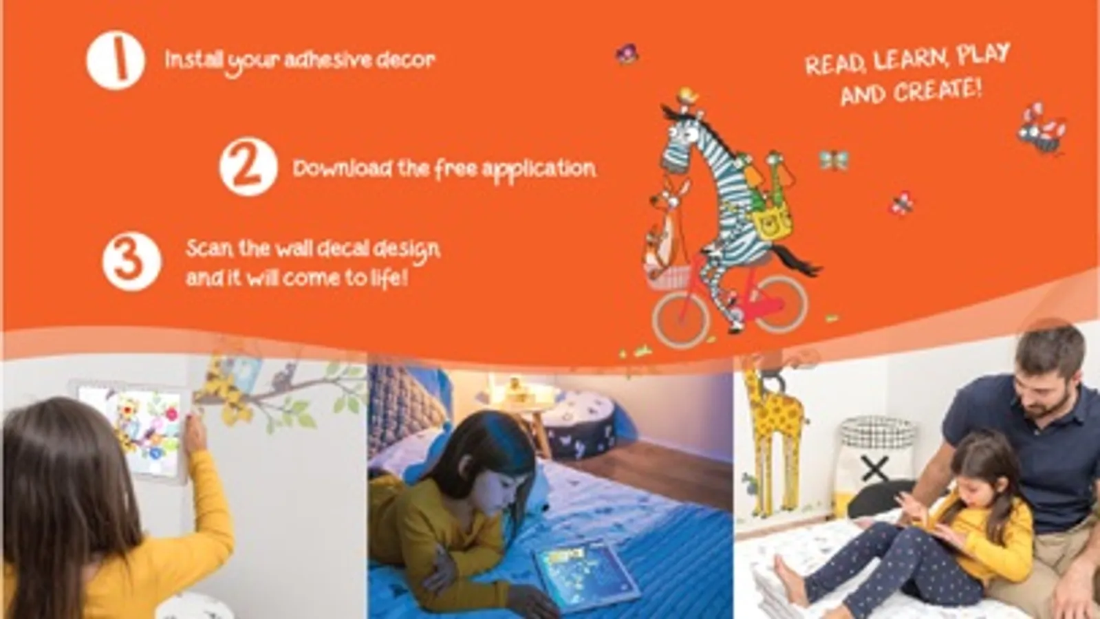 The app uses augmented reality (AR) in a special way that brings to life each story’s characters right on your wall! It also has three great features for each room decor and theme: Story, Games, and Creative mode.