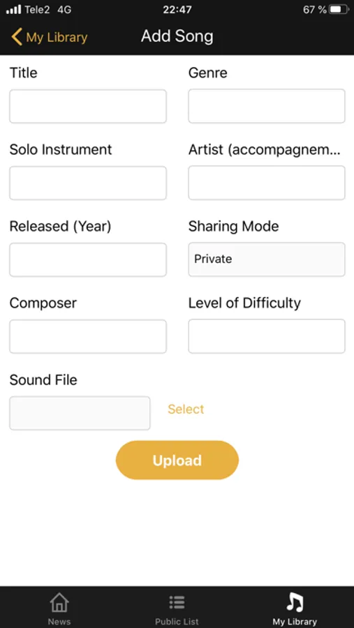 • Upload your own backing tracks to your personal library