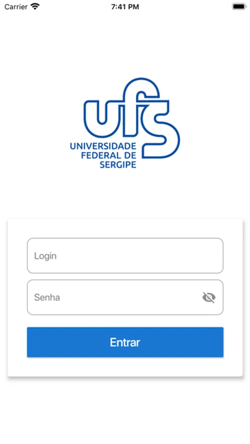 Para acessar o aplicativo basta informar seu usuário e senha, os mesmos utilizados no SIGAA WEB.
