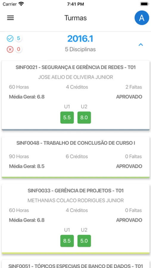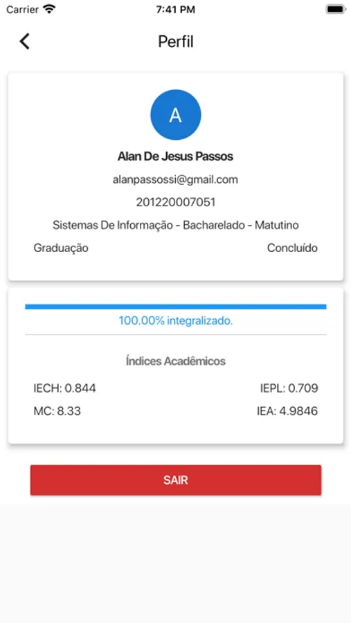 Consulta de vínculos, índices acadêmicos (ex. Média de Conclusão, Índice de Eficiência em Carga Horária), acessar as notícias cadastradas pelos docentes nas turmas virtuais, consultar atividades (ex. tarefas e avaliações) bem como detalhar estas e realizar download de arquivos, acessar dados referentes aos restaurantes (ex. Cardápio, valores e extrato de uso do Restaurante), também é possível realizar a consulta de horários individuais e notas.