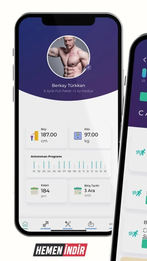 Berkay Türkkan fitness ve vücut geliştirme mobil uygulamasıyla artık antrenmanlar daha verimli, beslenme düzenini korumak daha kolay.